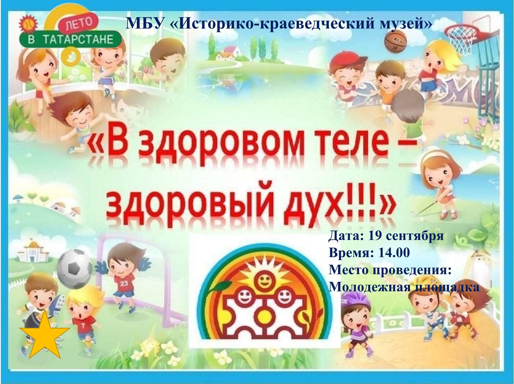 Приглашаем Вас на мероприятие, посвященное здоровому образу жизни. В ходе мероприятия предстоит поучаствовать в спортивных эстафетах, разгадать загадки и ответить на каверзные вопросы викторины. Это отличная возможность провести время с пользой, завести новые знакомства и участвовать в увлекательных мероприятиях! Место проведения: Молодежная площадка. Дата и время: 19 сентября 14.00. Ждем Вас!